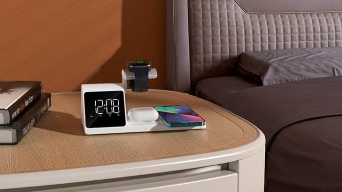 משטח טעינה בעל שעון דיגיטלי וכן תאורת לילה וכבל טעינת USB.